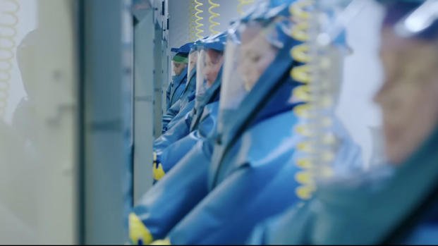 Scientists behind blue contagion suits in Apple TV+'s Pluribus.