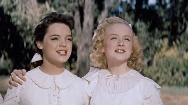 Susan Luckey, along with fellow cast member, singing "You'll Never Walk Alone," in 1956's Carousel.