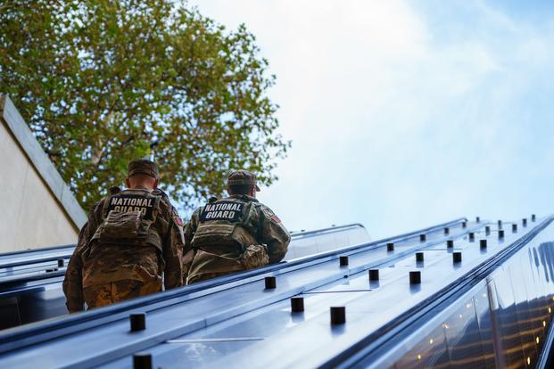 South Carolina Army National Guard Guardsmen assigned to the D.C. Safe and Beautiful Task Force patrol near the Potomac Avenue Metro station in Washington, D.C., Sept 14, 2025 (Army Sgt. Ian Doyle, National Guard, DoW).