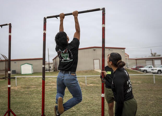 U.S. Marines with Recruiting Substation South Park, Recruiting Station San Antonio, conducted a United States Marine Corps Fitness Challenge at Pleasanton High School in Pleasanton, Texas, Dec. 3, 2025 (U.S. Marine Corps photo by Sergeant Jacqueline Peguero-Montes)
