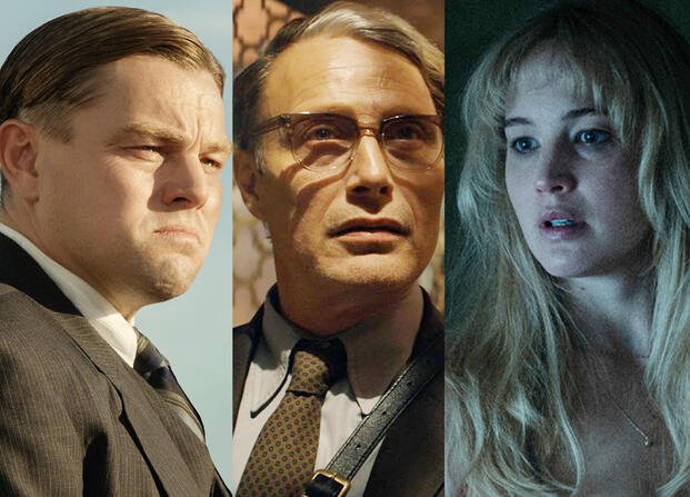 Editorial collage of Leonardo DiCaprio, Mads Mikkelsen and Jennifer Lawrence from other films