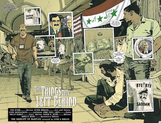 Written by Tom King, with artwork by Mitch Gerads, “Sheriff of Babylon” was originally published in December 2016, with the second volume hitting the shelves in February. The series was greeted with immediate acclaim for its uncompromising portrayal of the early years of the Iraq War.