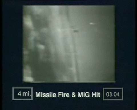 Actual footage of the engagement of 2 VF-32 F-14As from USS John F. Kennedy (CV-67) with 2 Libyan MiG-23's on