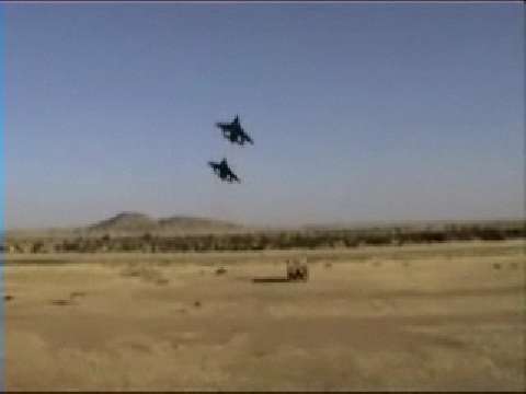 An F-18 is called in to take out an IED and the insurgents planning on detonating it.