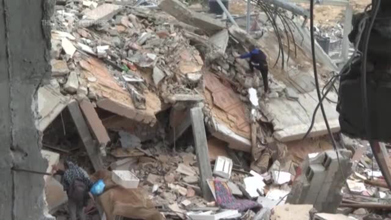 Palestinians returned to Khan Younis in the Gaza Strip on Monday to salvage what they could from the destroyed buildings