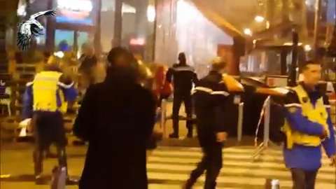 Video footage from outside the Bataclan Theatre in Paris captures chaos, and a heavy police response.