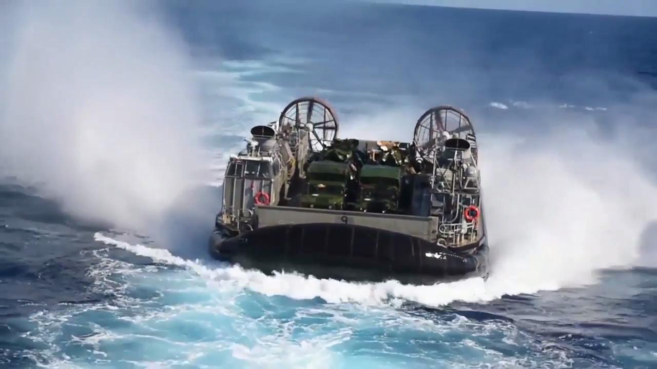 US Navy LCAC (Landing Craft Air Cushion) launch and recovery aboard the amphibious assault ship USS Bonhomme Richard (LHD-6) during