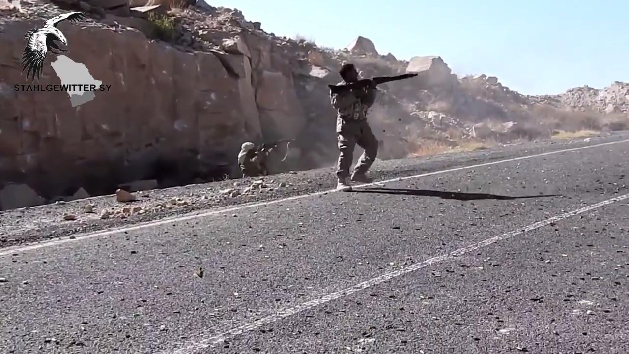Saudi-backed Hadi loyalists engaging Houthi forces with MG3 machine gun in Northern Yemen, January 2017.