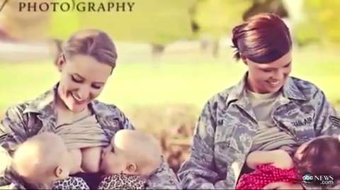 Photos of military moms' breast- feeding in public have sparked controversy.