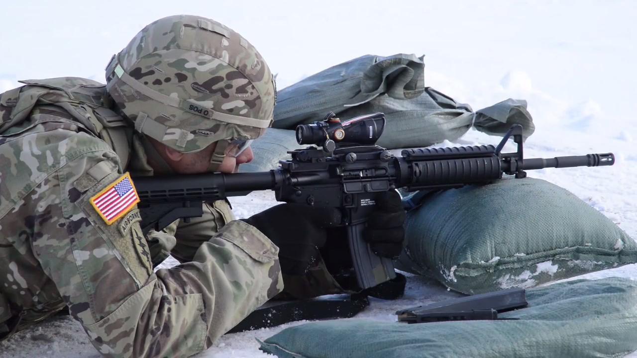 U.S. Marines during live fire training with M4 and M16 rifles. First part of the video happens in a closed