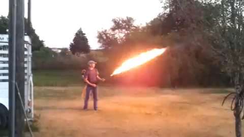 DON’T TRY THIS AT HOME!! Why did this guy make a flamethrower? Who knows. It’s pretty awesome though. The cigarette