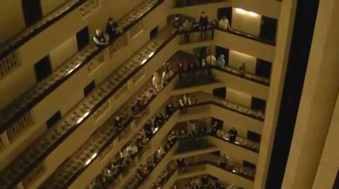 The Kentucky All State Choir sings the National Anthem in a hotel atrium with amazing results.
