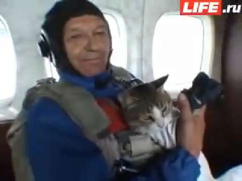 60-year-old Vladimir Kulikov, from the Novgorod Parachuting Club went sky diving with his cat, named "The Kid". They jumped from