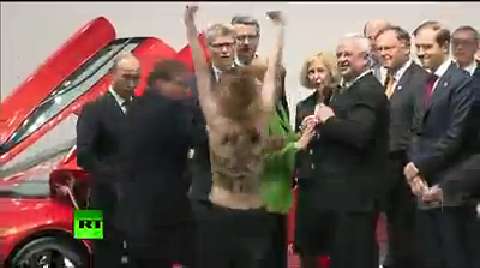 Topless activists from the Femen protest group tried to disrupt the visit of Russian President Putin and Chancellor Merkel to