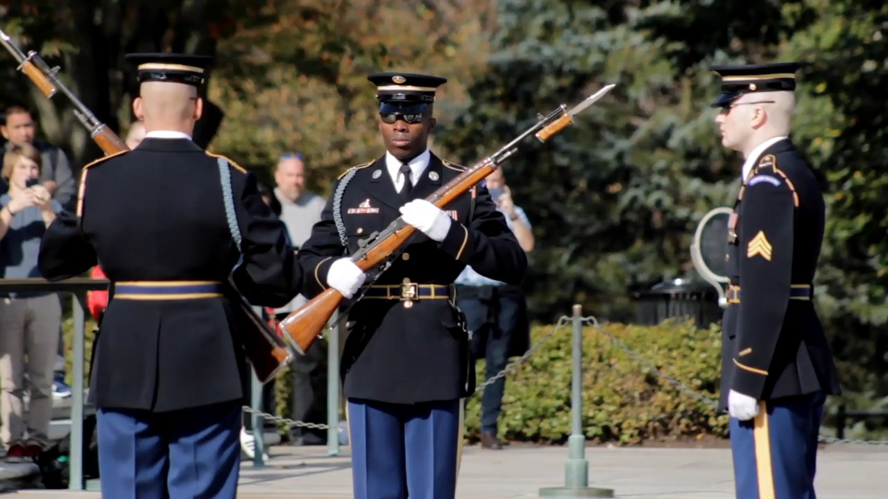 Arlington National Cemetery, Tomb of the Unknown Soldier, Changing of the Guard. (DoD video)