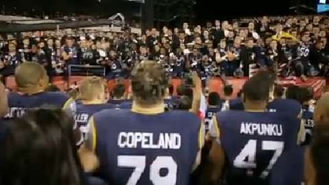 The Brigade of Midshipmen and the Navy football team sing the Unites States Naval Academy alma matter "Navy Blue and