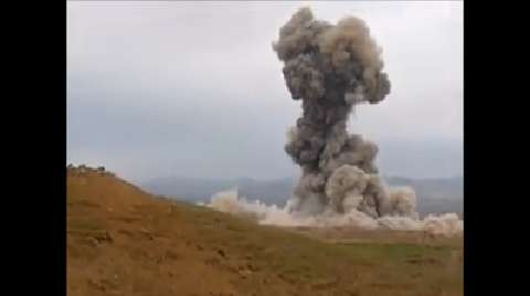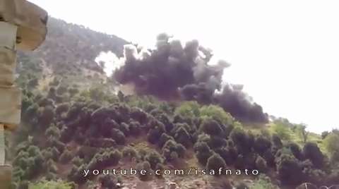 Two 2000lb GBU-31 JDAM's dropped on insurgent position in treeline (Musa-Qala,Afghanistan). Spectacular explosions as two 2000lb JDAM's are delivered via