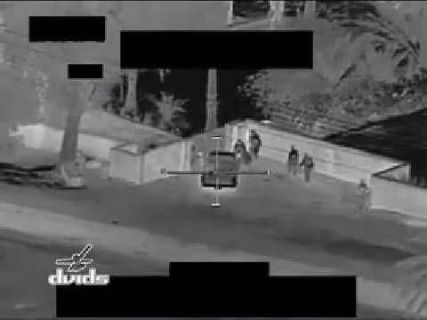 B-roll of Coalition Forces Apaches engaging insurgents from the air. Scenes include aerial footage of a gun ship firing upon