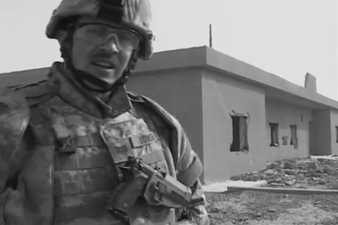 FLIR footage showing US Apache helicopters engage snipers with 30 mm guns as they're taking mortar fire from the enemy.