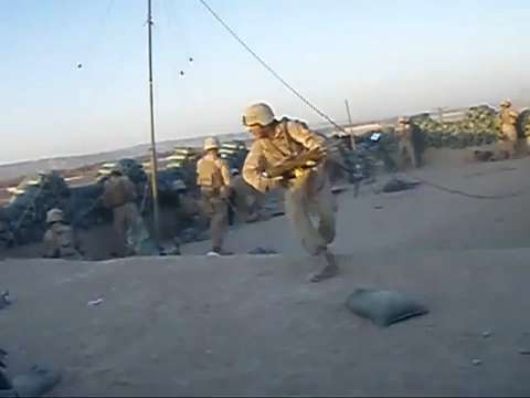 Helmet cam POV of a Marine in Afghanistan having a very close call with an Improvised Explosive Device (IED). Thankfully
