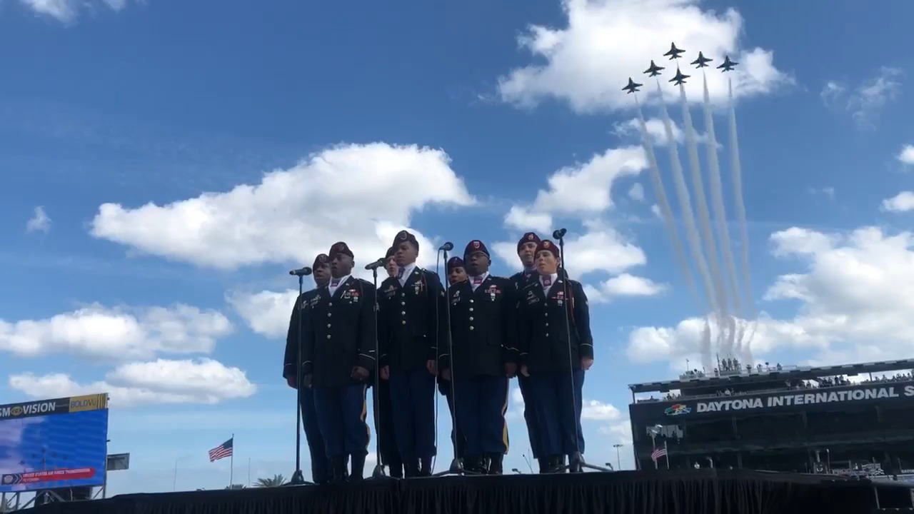 Paratroopers had the privilege of singing the National Anthem at the NASCAR Motor Speedway in Daytona.