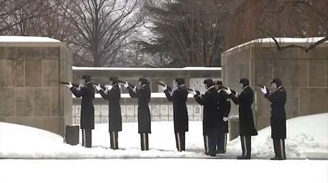 Soldiers of The Old Guard continue their duties in Arlington National Cemetery in the midst of Winter Storm Pax.
