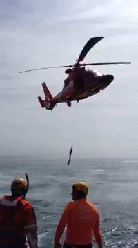 What it looks like to get air lifted by the US Coast Guard from a ship's perspective.