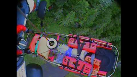 A Coast Guard Air Station Sitka MH-60 Jayhawk helicopter crew hoists the survivors of a small plane crash on Prince