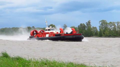 The Hovercraft Siyay heading down the Fraser River at Richmond on May 13, 2013.