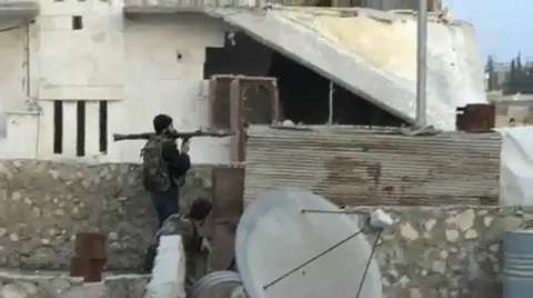 FSA rebels take aim and engage an SAA tank right in the turret. Note: Nothing after the initial engagement, don't