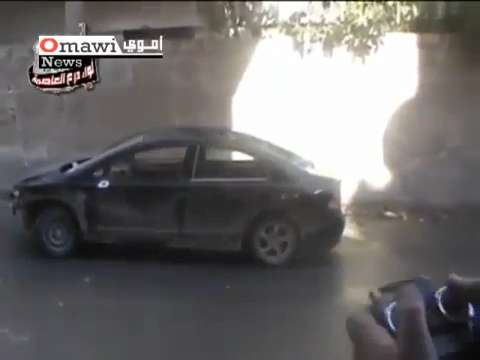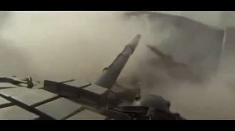 A Syrian rebel filming a recent battle is hit by a large explosion likely from a tank or RPG. 12/14/2012.