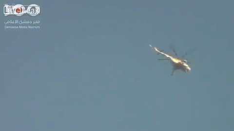 The tail rotor of a Syrian Army helicopter is shot off bringing the aircraft down.