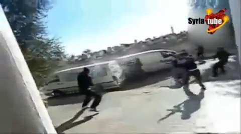 Syrian rebel fighters try to ambush a Syrian Army bus that is full of security forces, but the Syrian soldiers
