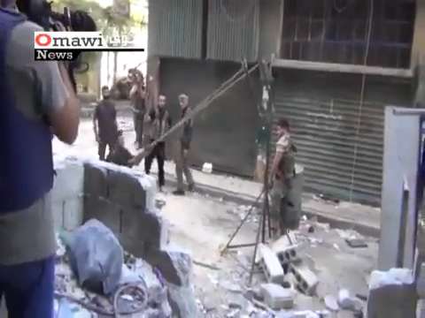 Syrian rebel bomb slingshot in action. 10/15/2012.