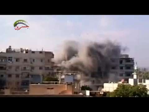 Syrian L-39 jet drops bomb on Aleppo, Syria.