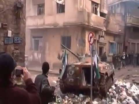 The Free Syrian Army (FSA) uses a captured BMP against the Syrian Army (Feb 2, 2012).