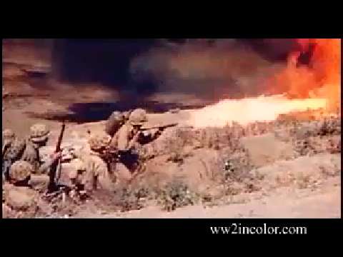 GRAPHIC: This footage showcases raw and uncut graphic footage of flamethrowers being used on Iwo Jima during World War Two.