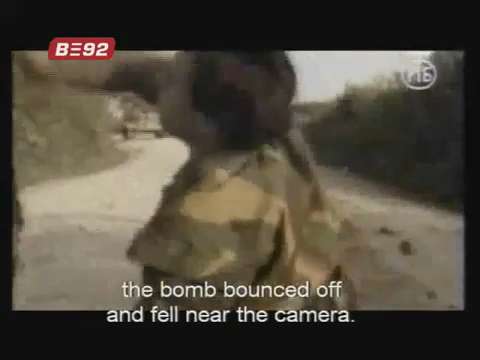This guy barely escapes with his life after a mortar hits feet away you can see the shrapnel rip past