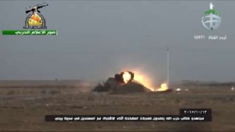 Hezbollah fighters battling ISIS near Baiji, Iraq destroy an ISIS car bomb that was speeding towards their position.