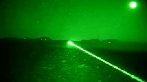 A laster targeted air strike recored through night vision goggles in Afghanistan.