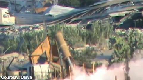 A Chemical surface to surface missile launching from Mazzeh military airport. This missile hit Eastern Ghouta (Eastern Damascus) and was