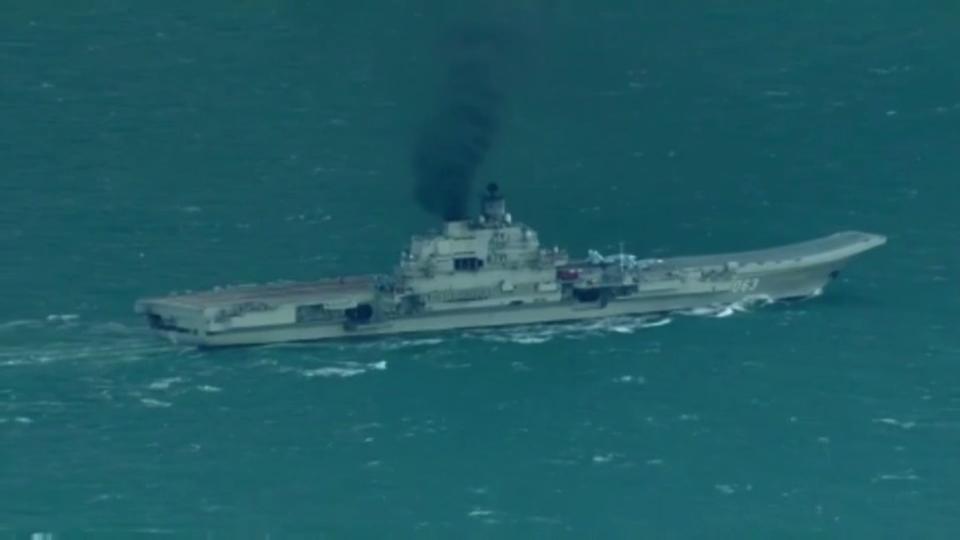 Two British destroyers escorted a Russian aircraft carrier and seven other Russian ships through the English Channel on Thursday.