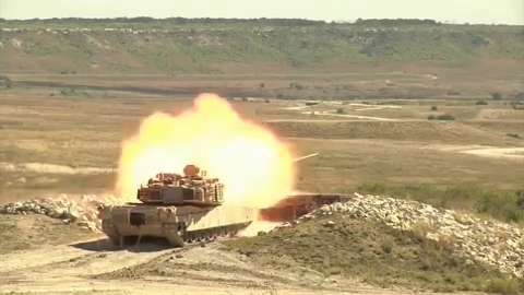 M1A2 Tanks, M109A6 Paladin Howitzers, and Bradley Fighting Vehicles send rounds down range in a live-fire exercise at Fort Hood