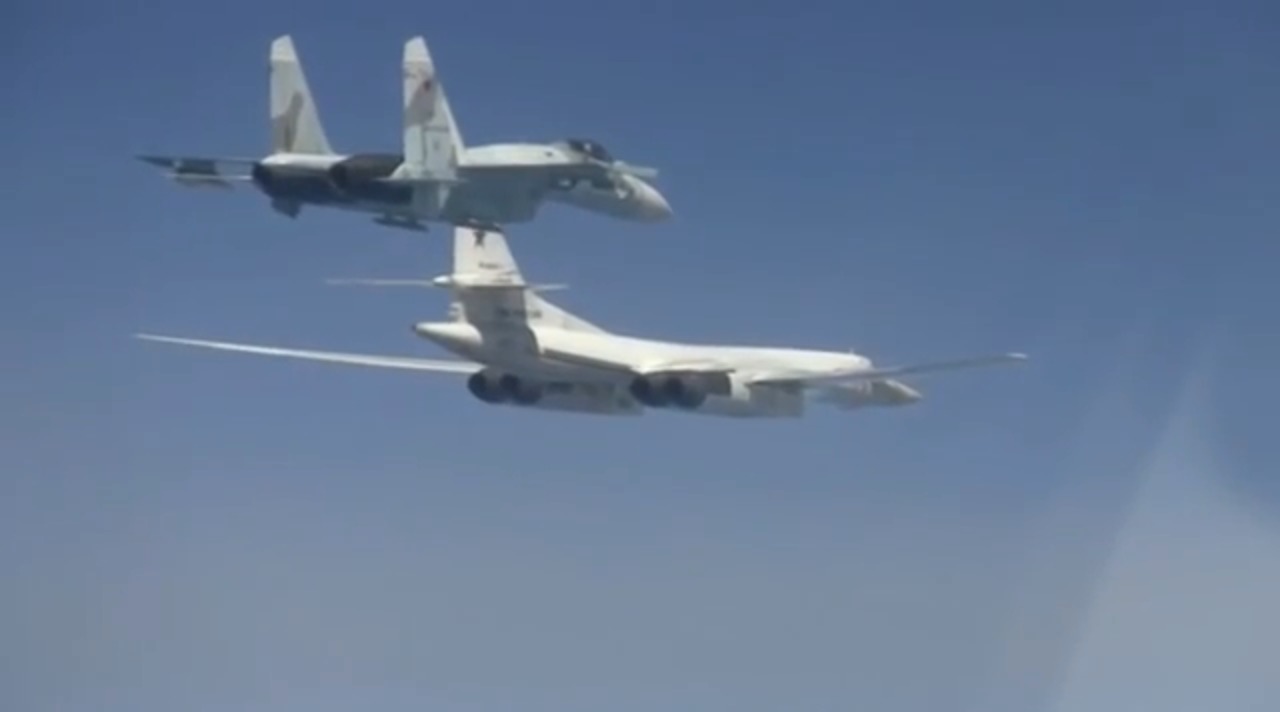 Tu-160 strategic bombers hold a training exercise over the Black Sea along with Su-27SM jets that took off from Crimea.