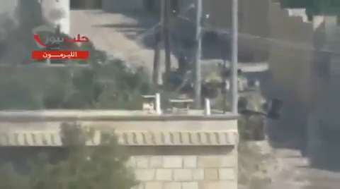 A Syrian Army tank is a sitting duck for rebels armed with RPGs. Watch the soldier manning the tank bail