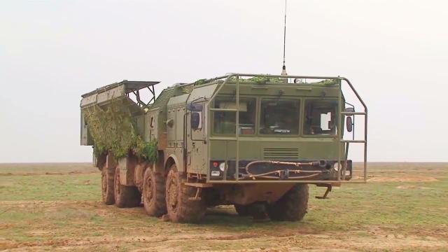 The Russian Ministry Of Defense live fires the Iskander-M Tactical Missile Launcher Cruise Missile.