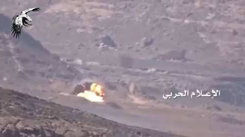 Houthi rebels destroy a Saudi tank with an anti-tank missile in the Saudi City of Jizan.