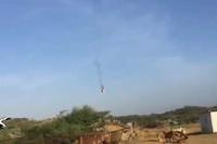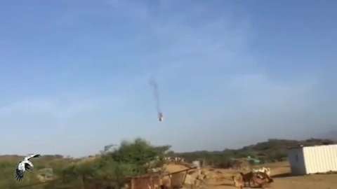 Two different videos show a bomber and an attack helicopter drop bombs on alleged ISIS positions.