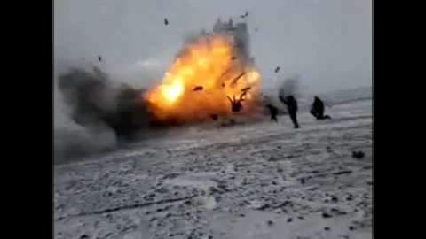 A Ukrainian Artillery team is taken out when their howitzer explodes while attempting to fire it.