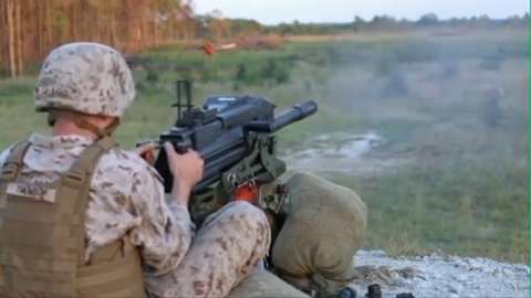 Marines at Camp Lejeune train on the MK-19 Grenade Launcher with explosive impacts.